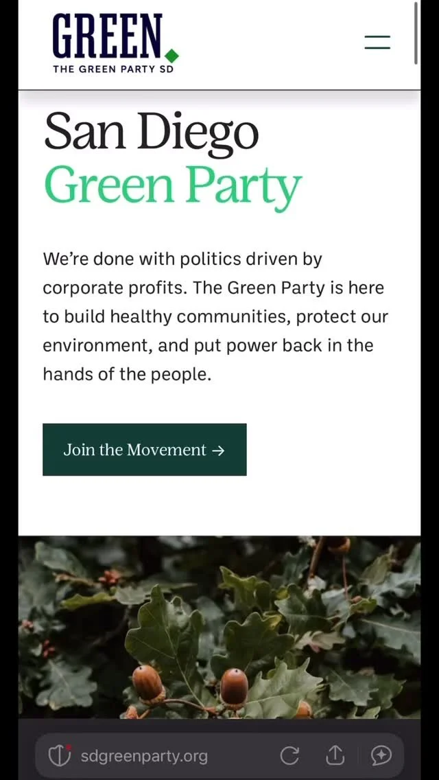 Meetups & ThingsEvents Upcoming Events Jan 24 Jan 24, 2026 11:30 AM – 1:00 PM11:30 – 13:0011:30 AM – 1:00 PM Green Party SD General Membership Meeting Jan 24, 2026 11:30 AM – 1:00 PM11:30 – 13:0011:30 AM – 1:00 PM Jan 24, 2026 11:30 AM – 1:00 PM11:30 – 13:0011:30 AM – 1:00 PM Feb 28 Feb 28, 2026 11:30 AM – 1:00 PM11:30 – 13:0011:30 AM – 1:00 PM Green Party SD General Membership Meeting Feb 28, 2026 11:30 AM – 1:00 PM11:30 – 13:0011:30 AM – 1:00 PM Feb 28, 2026 11:30 AM – 1:00 PM11:30 – 13:0011:30 AM – 1:00 PM Past Events Dec 13 Dec 13, 2025 11:30 AM – 1:00 PM11:30 – 13:0011:30 AM – 1:00 PM Green Party SD End of Year Kickback Dec 13, 2025 11:30 AM – 1:00 PM11:30 – 13:0011:30 AM – 1:00 PM Dec 13, 2025 11:30 AM – 1:00 PM11:30 – 13:0011:30 AM – 1:00 PM Nov 19 Nov 19, 2025 6:00 PM – 8:00 PM18:00 – 20:006:00 PM – 8:00 PM San Diego Volunteers for Butch Ware Meeting Nov 19, 2025 6:00 PM – 8:00 PM18:00 – 20:006:00 PM – 8:00 PM Nov 19, 2025 6:00 PM – 8:00 PM18:00 – 20:006:00 PM – 8:00 PM Oct 25 Oct 25, 2025 11:30 AM – 1:00 PM11:30 – 13:0011:30 AM – 1:00 PM Green Party SD General Membership Meeting Oct 25, 2025 11:30 AM – 1:00 PM11:30 – 13:0011:30 AM – 1:00 PM Oct 25, 2025 11:30 AM – 1:00 PM11:30 – 13:0011:30 AM – 1:00 PM Oct 19 Oct 19, 2025 12:00 PM – 3:00 PM12:00 – 15:0012:00 PM – 3:00 PM From Grassroots to Gaza: Panel on Palestine Oct 19, 2025 12:00 PM – 3:00 PM12:00 – 15:0012:00 PM – 3:00 PM Oct 19, 2025 12:00 PM – 3:00 PM12:00 – 15:0012:00 PM – 3:00 PM Sep 27 Sep 27, 2025 11:30 AM – 1:00 PM11:30 – 13:0011:30 AM – 1:00 PM Green Party SD General Membership Meeting Sep 27, 2025 11:30 AM – 1:00 PM11:30 – 13:0011:30 AM – 1:00 PM Sep 27, 2025 11:30 AM – 1:00 PM11:30 – 13:0011:30 AM – 1:00 PM Aug 23 Aug 23, 2025 11:30 AM – 1:00 PM11:30 – 13:0011:30 AM – 1:00 PM Green Party SD General Membership Meeting Aug 23, 2025 11:30 AM – 1:00 PM11:30 – 13:0011:30 AM – 1:00 PM Aug 23, 2025 11:30 AM – 1:00 PM11:30 – 13:0011:30 AM – 1:00 PM Aug 20 Aug 20, 2025 6:00 PM – 7:30 PM18:00 – 19:306:00 PM – 7:30 PM Butch Ware Campaign New Volunteer Orientation Aug 20, 2025 6:00 PM – 7:30 PM18:00 – 19:306:00 PM – 7:30 PM Aug 20, 2025 6:00 PM – 7:30 PM18:00 – 19:306:00 PM – 7:30 PM Aug 8 Aug 8, 2025 4:00 PM – 5:30 PM16:00 – 17:304:00 PM – 5:30 PM AIPAC and the Imperial Boomerang Aug 8, 2025 4:00 PM – 5:30 PM16:00 – 17:304:00 PM – 5:30 PM Aug 8, 2025 4:00 PM – 5:30 PM16:00 – 17:304:00 PM – 5:30 PM Jul 26 Jul 26, 2025 11:30 AM – 1:00 PM11:30 – 13:0011:30 AM – 1:00 PM Green Party SD General Membership Meeting Jul 26, 2025 11:30 AM – 1:00 PM11:30 – 13:0011:30 AM – 1:00 PM Jul 26, 2025 11:30 AM – 1:00 PM11:30 – 13:0011:30 AM – 1:00 PM May 30 May 30, 2025 5:00 PM – 7:00 PM17:00 – 19:005:00 PM – 7:00 PM Butch Ware Meet and Greet May 30, 2025 5:00 PM – 7:00 PM17:00 – 19:005:00 PM – 7:00 PM May 30, 2025 5:00 PM – 7:00 PM17:00 – 19:005:00 PM – 7:00 PM Follow Us on Social Media!